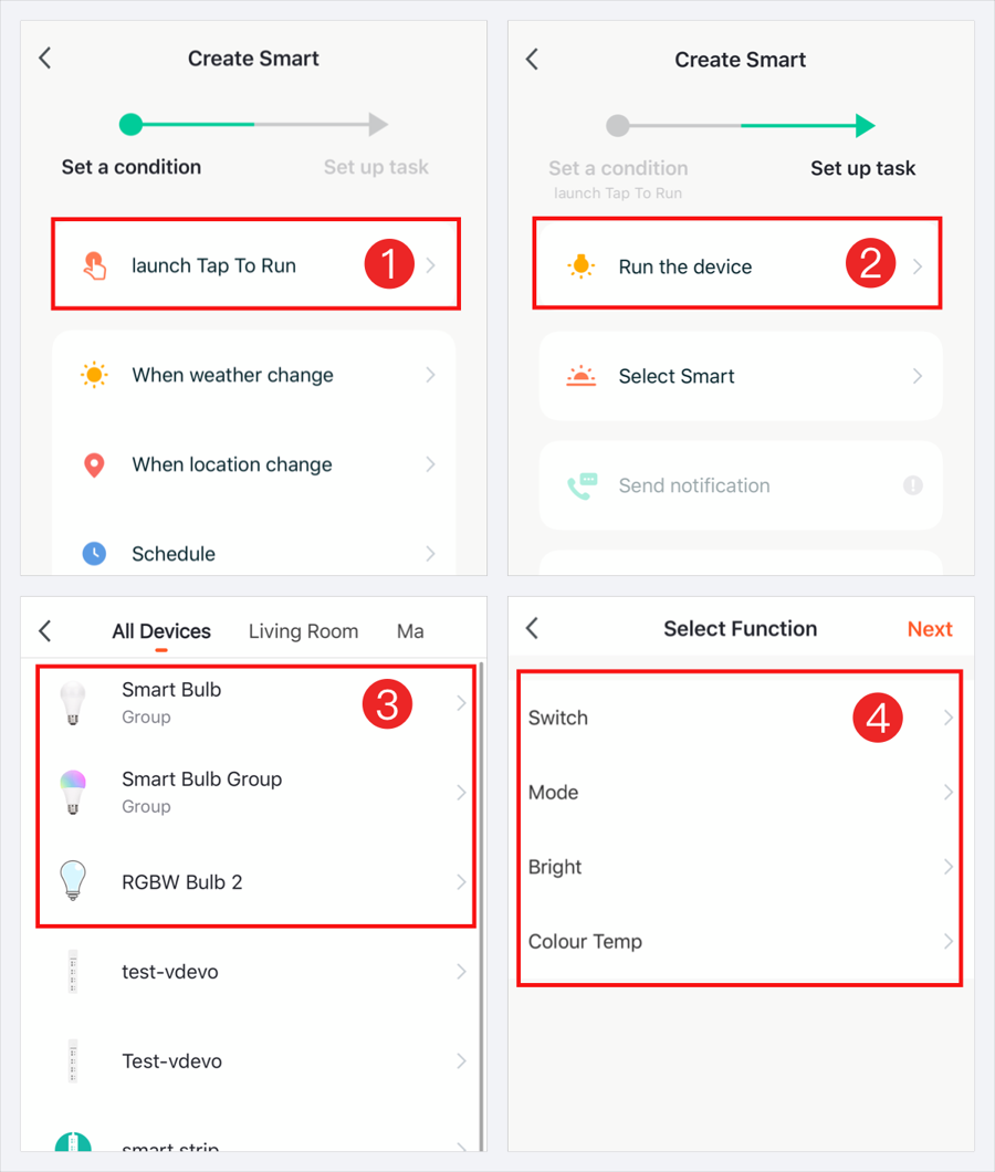 When the device status changes: The linkage between the device status change and the devices.For example, you can set ’when the air conditioner is on, the aroma diffuser and air purifier will be automatically turned on, or when the door sensor is on, the alarm will be triggered.’